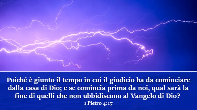 Poiché è giunto il tempo in cui il giudicio ha da cominciare dalla casa di Dio; e se comincia prima da noi, qual sarà la fine di quelli che non ubbidiscono al Vangelo di Dio?